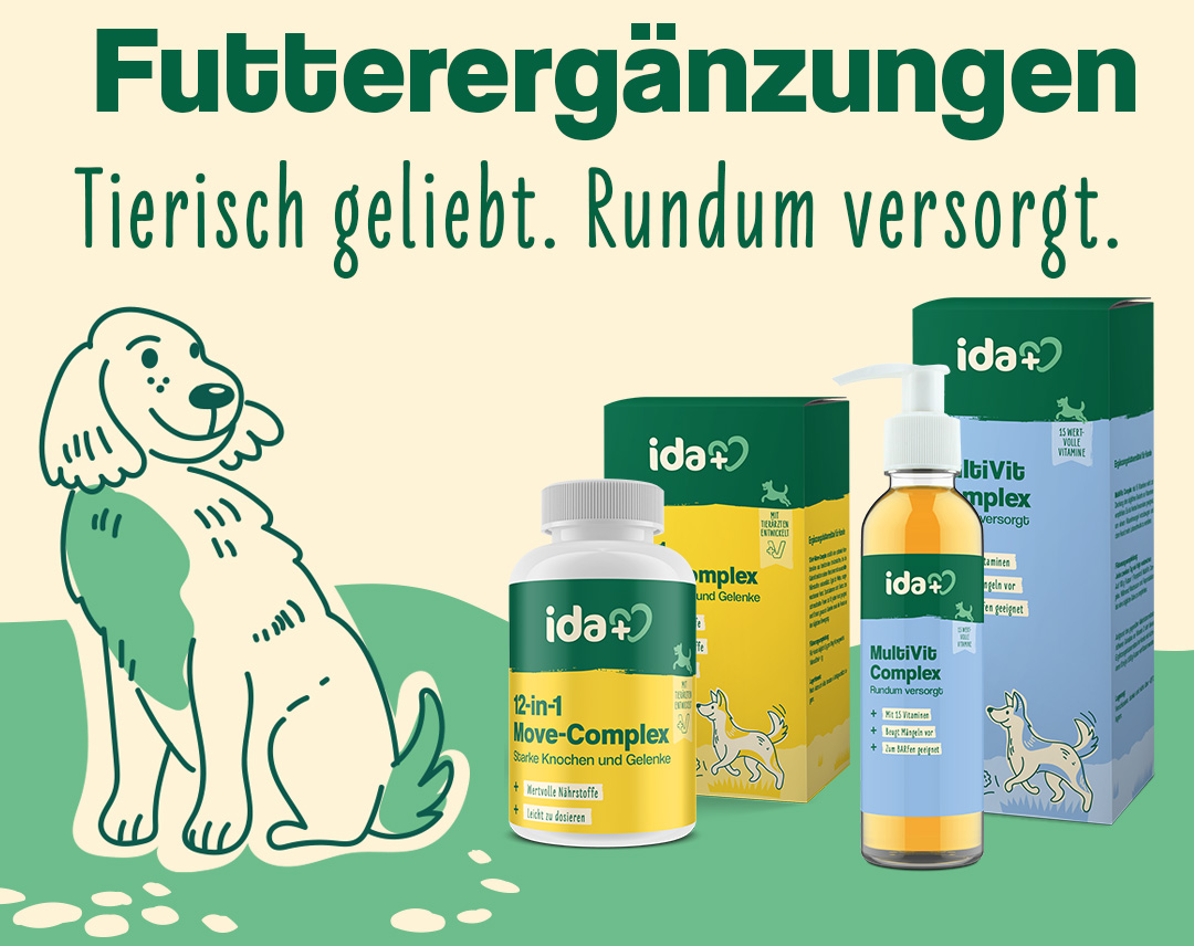 Bei ida+ steht die Gesundheit und das Wohlbefinden Deines Hundes im Mittelpunkt. Unsere Mission ist es, Dich und Deinen Hund dabei zu unterstützen, ein glückliches, aktives und gesundes Leben zu führen. Wir glauben daran, dass das Geheimnis für ein langes und erfülltes Hundeleben in einer ausgewogenen Ernährung und der richtigen Pflege liegt. Wir verstehen, dass jeder Hund einzigartig ist, und wir setzen uns dafür ein, Produkte zu entwickeln, die auf die Bedürfnisse Deines Vierbeiners abgestimmt sind. Ob es darum geht, das Immunsystem zu stärken, die Gelenke zu unterstützen oder einfach das Wohlbefinden zu fördern – bei ida+ wird Dein Hund tierisch geliebt und rundum versorgt.